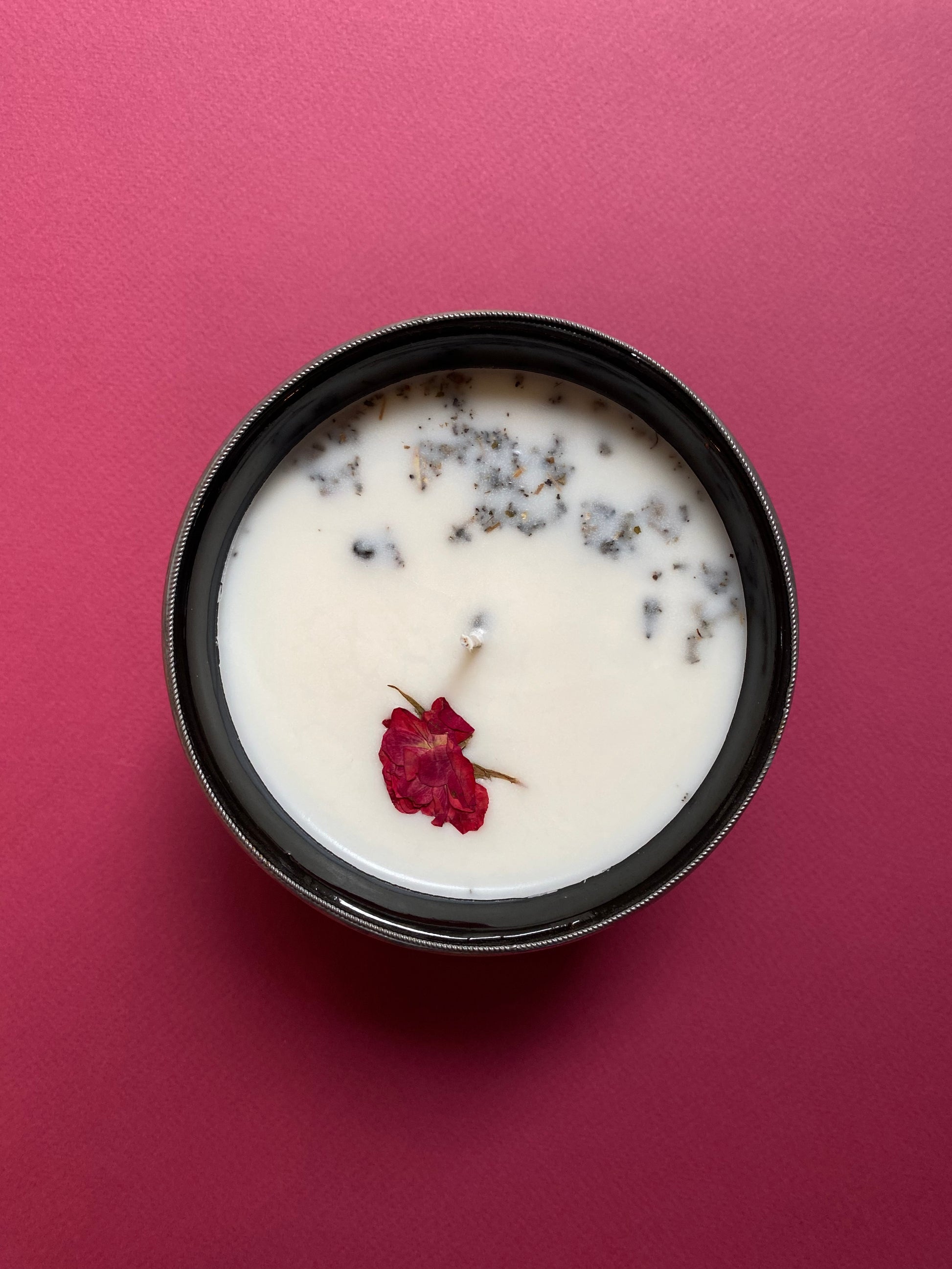 שעוות סויה טהורה , מרווה לבנה, פרחים מיובשים, פתיל כותנה