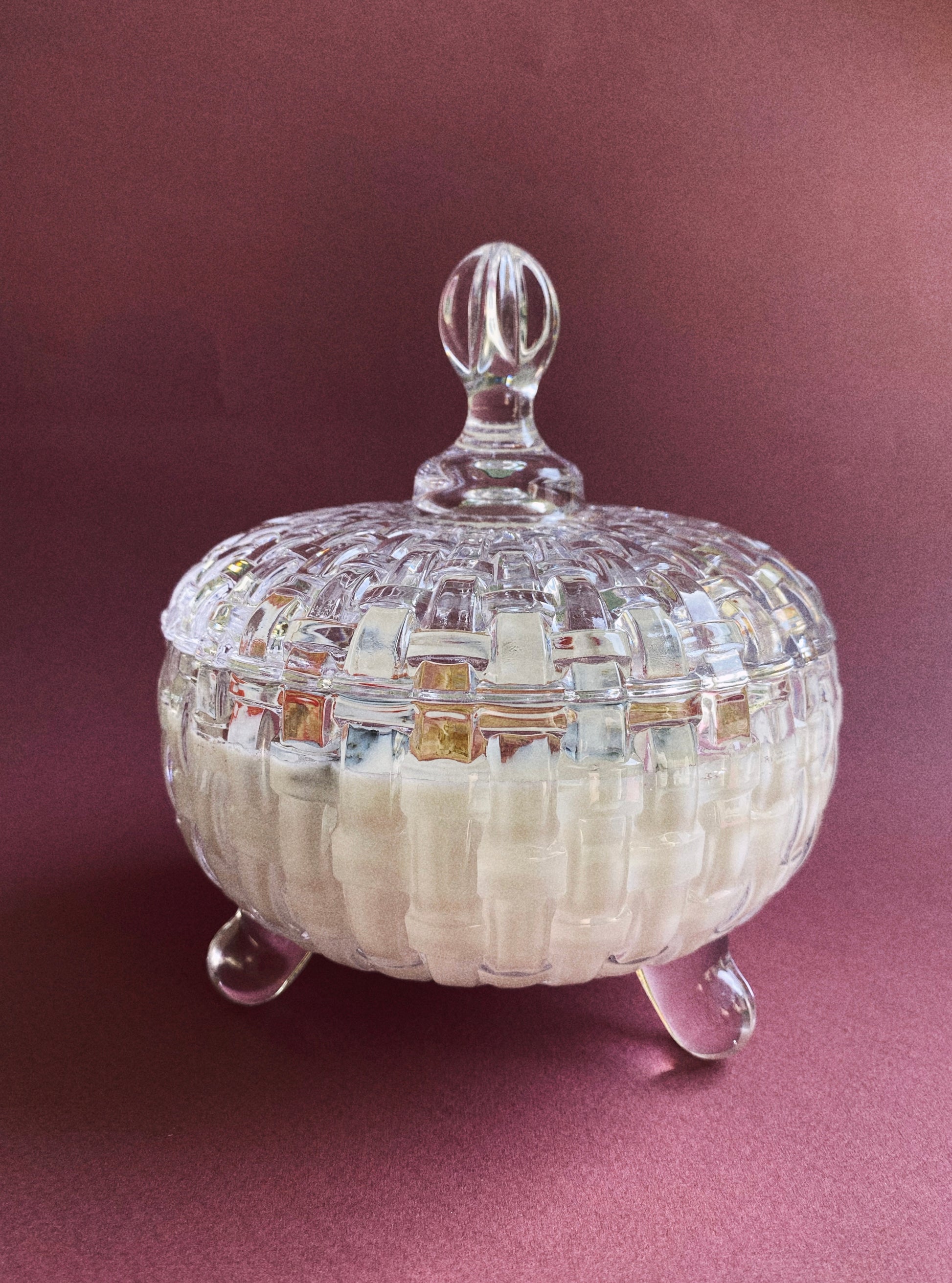 נר וינטאג' צרפתי מהמם, עשוי זכוכית איכותית בעבודת יד, המשדר יוקרה ואלגנטיות. הנר מצויד ב-2 פתילי כותנה, אשר מבטיחים להבות רכות ועשירות, המפיצות אור חמים ונעים. השילוב המוקפד של מרווה לבנה ופרחים מיובשים, מעניק לנר נופך טבעי ומרגיע, תוך שמירה על אסתטיקה עדינה ואלגנטית. הייחודיות של הנר, בשילוב עם החומרים האיכותיים, יוצרת חווית אווירה בלתי נשכחת, המוסיפה נופך של קסם וסטייל לכל חלל